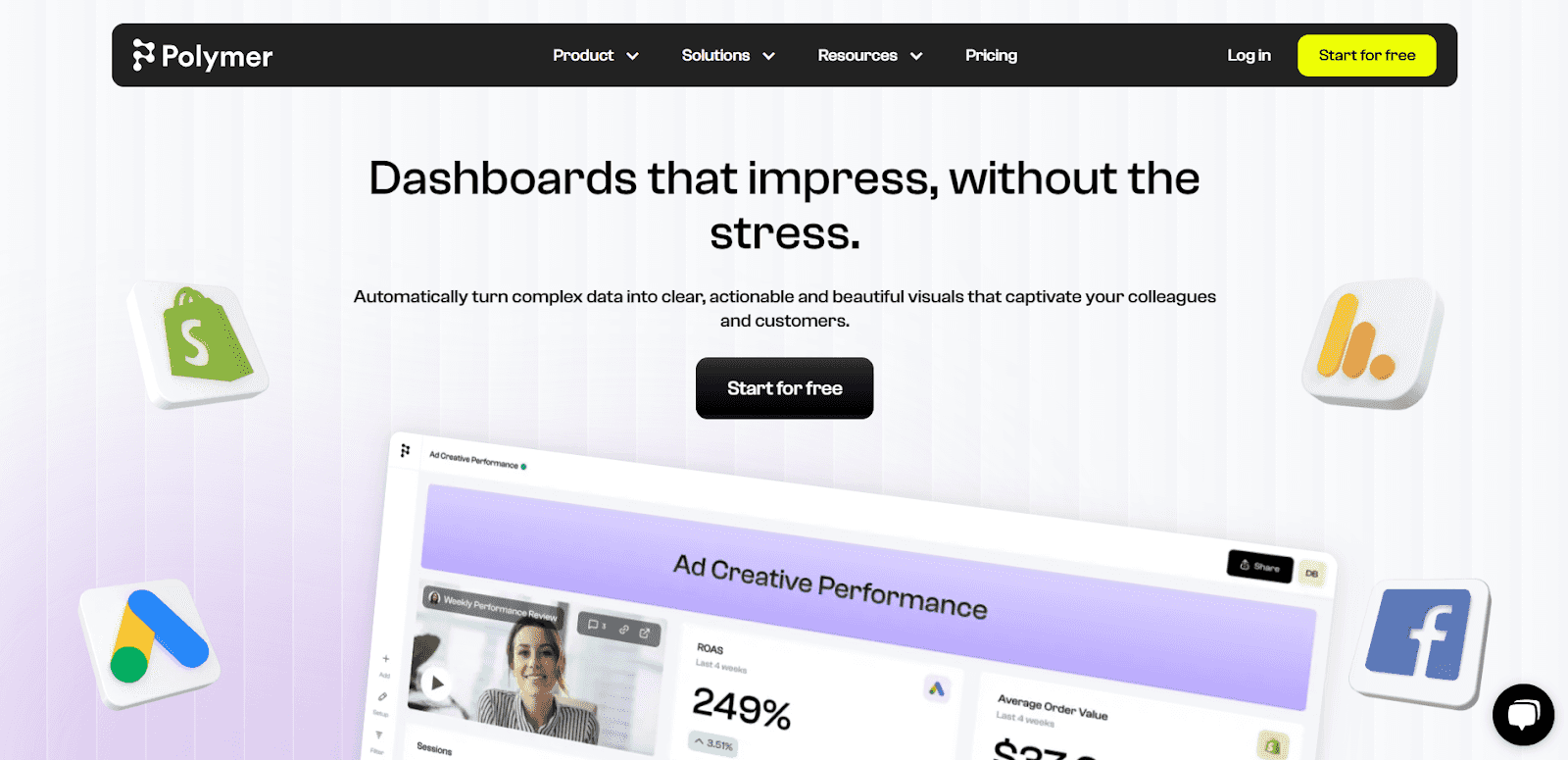 As mentioned, Polymer utilizes AI technology to analyze data gathered from multiple sources and help users gain a better understanding of it. Since it offers various integrations with platforms such as Facebook, Google Ads, and Shopify, you can easily import data from spreadsheets, databases, and third-party applications.